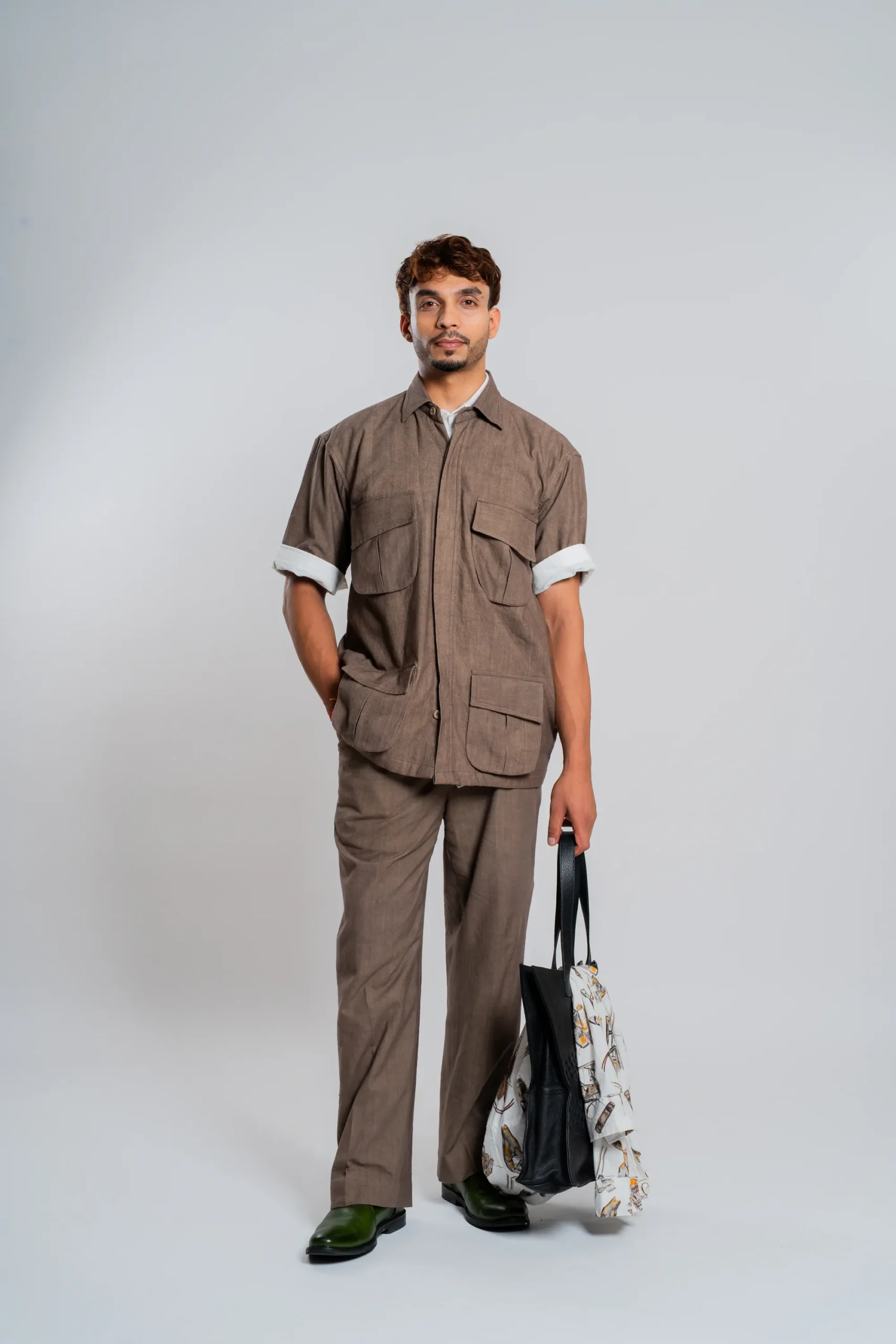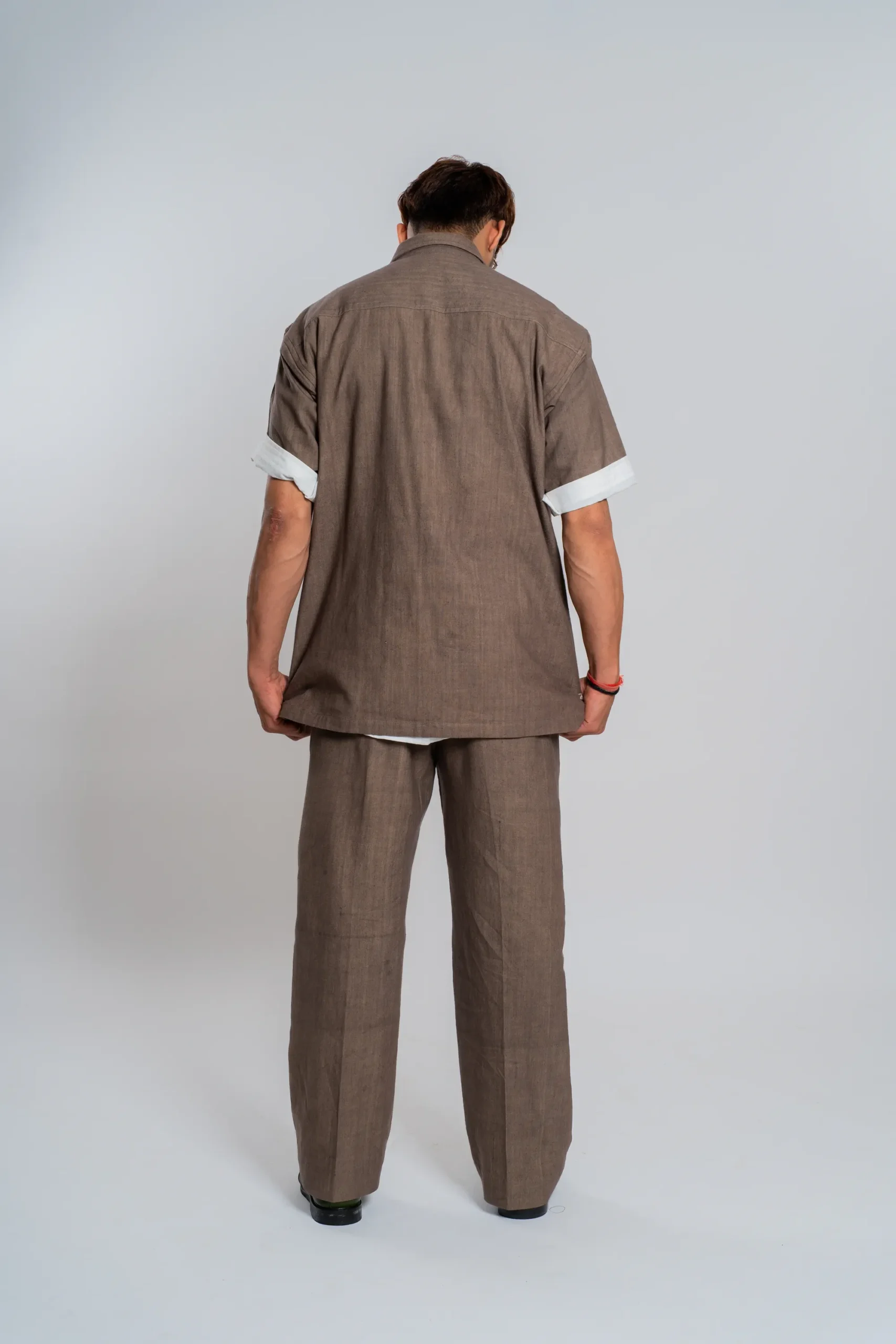 Handwoven khadi trousers in a matching shade, tailored in a straight silhouette with side pockets. Designed for coordinated or independent styling.